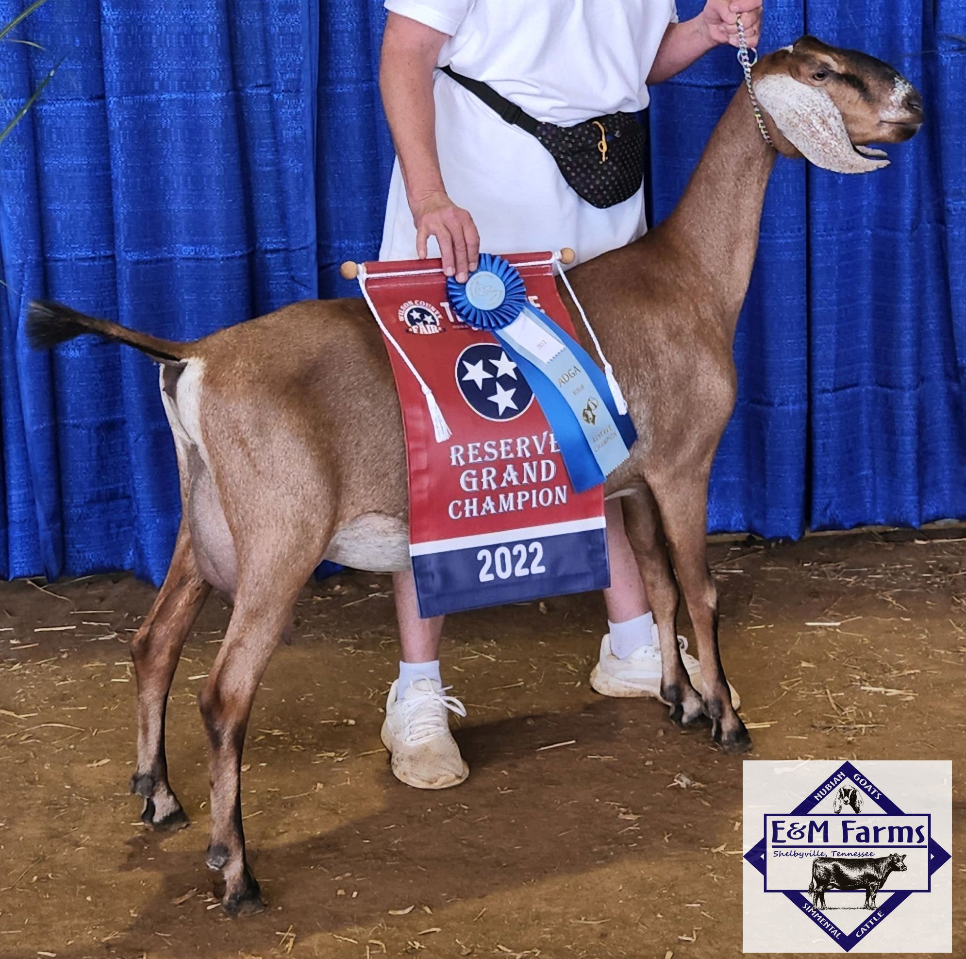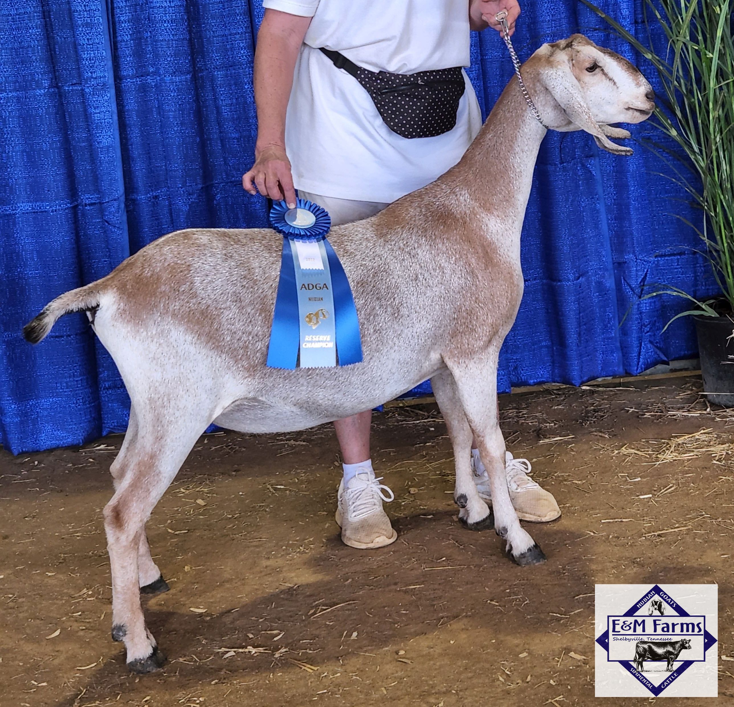 GCH (pending)E&M Farms KA Shasta 10*M N1928581 Sire: GCH Hoanbu KC King Aragorn Dam: E&M Farms Penelope 9*M 2022 LA: 91 VEEE DOB: 04/02/2018 G6S normal by parentage. Sr. Reserve Champion Ring 2 Southern Browsers Sep' 20 Sr. Reserve Champion Dickson County Fair Sep '20 Sr. Reserve Champion Rings 1 Goats n Ghosts GDGA Nov '20 Sr. Grand Champion Warren County Fair, Sep '21 Sr. Grand Champion & BIS Lincoln County Fair, Sep '21 Sr. Grand Champion Goat n Ghosts Oct '21